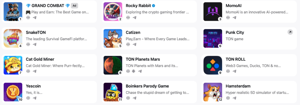 Earlier this year, Telegram released a clean open platform where publishers can deploy “Telegram Mini Apps” (TMAs) without much fuss or gatekeeping. Successful games soon followed. A brief rundown of current Telegram hits include: