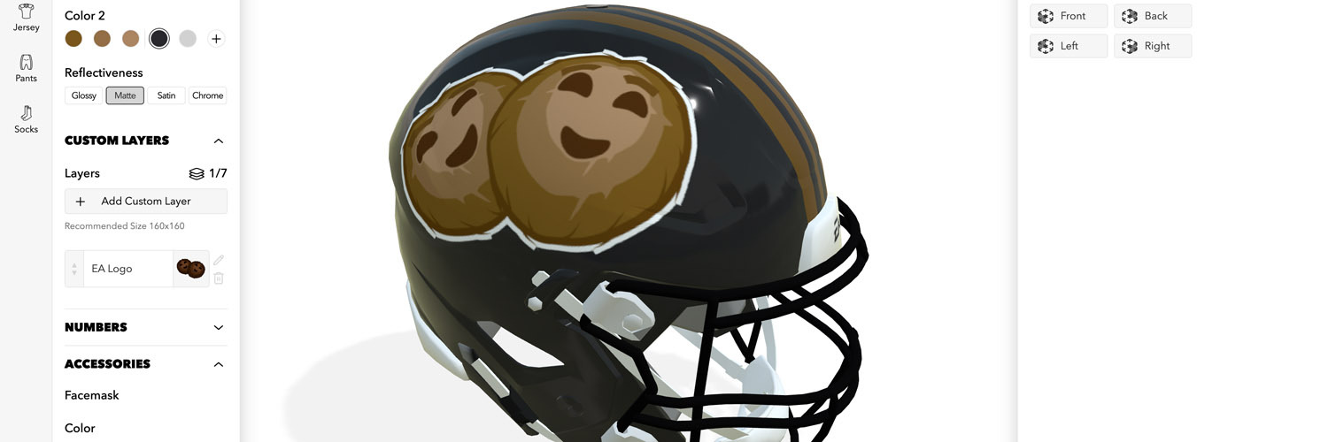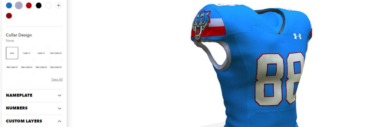 Responsive 2D/3D Web Rendering Engine: Using a combination of Angular and well-templated HTML/CSS we were able to create a fast-loading interface that swiftly rendered 3D helmets, uniforms, stadiums, etc.